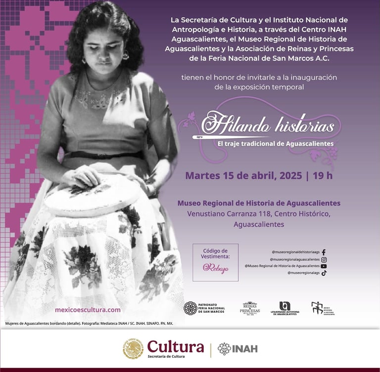 Promovimos una exposición temporal del traje tradicional de Aguascalientes en el Museo Regional de Historia de Aguascalientes.